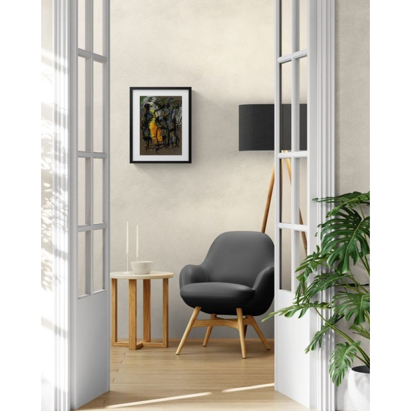 Pour une œuvre prête à accrocher, vous pouvez opter pour un cadre noir ou en bois clair, avec passe-partout et verre acrylique. Vous recevrez l'œuvre déjà encadrée.
