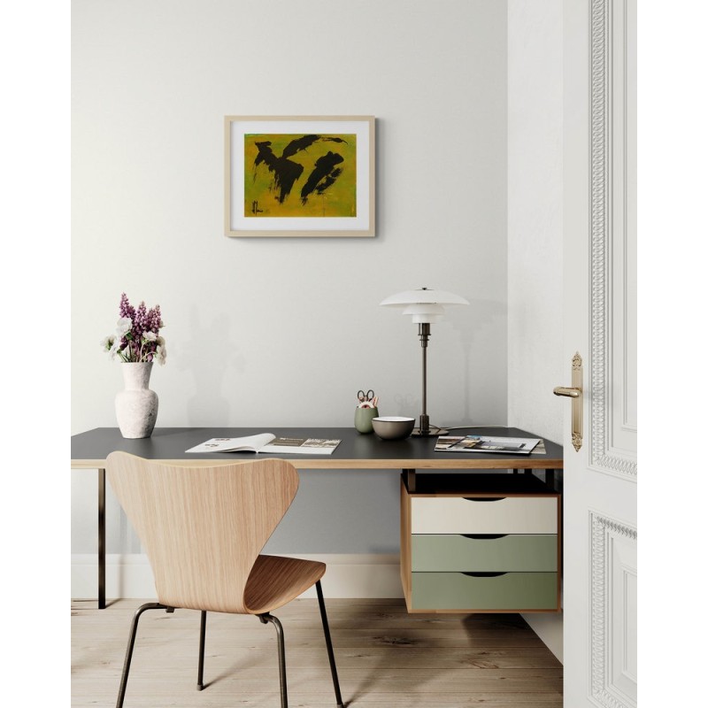 Pour une œuvre prête à accrocher, vous pouvez opter pour un cadre noir ou en bois clair, avec passe-partout et verre acrylique. Vous recevrez l'œuvre déjà encadrée.