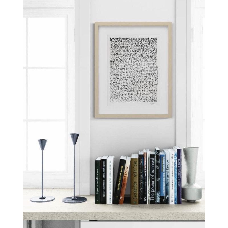 Pour une œuvre prête à accrocher, vous pouvez opter pour un cadre noir ou en bois clair, avec passe-partout et verre acrylique. Vous recevrez l'œuvre déjà encadrée.