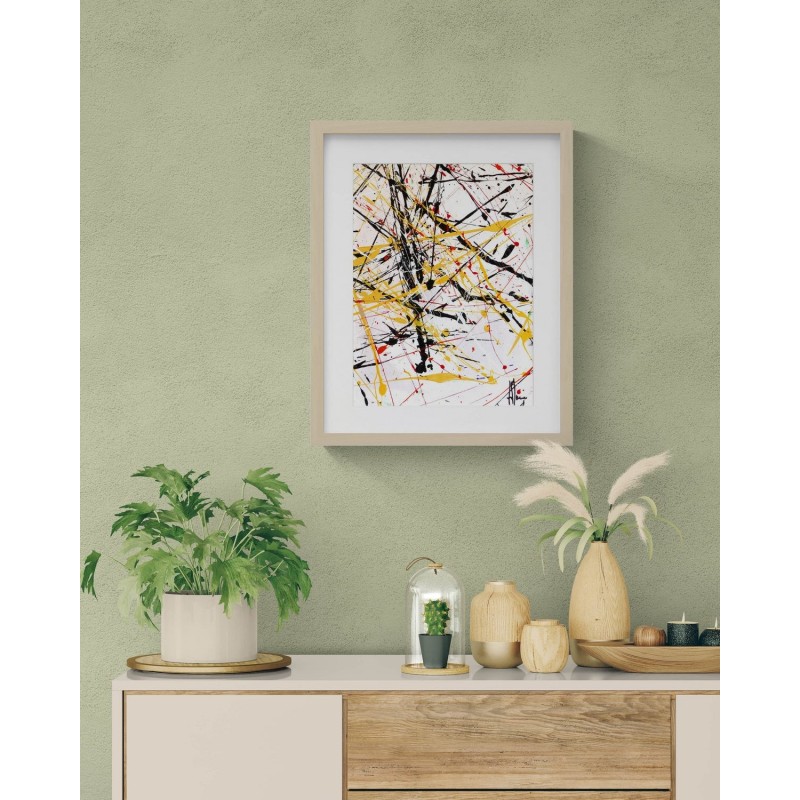 Pour une œuvre prête à accrocher, vous pouvez opter pour un cadre noir ou en bois clair, avec passe-partout et verre acrylique. Vous recevrez l'œuvre déjà encadrée.