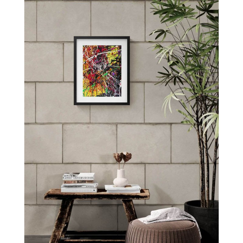 Pour une œuvre prête à accrocher, vous pouvez opter pour un cadre noir ou en bois clair, avec passe-partout et verre acrylique. Vous recevrez l'œuvre déjà encadrée.