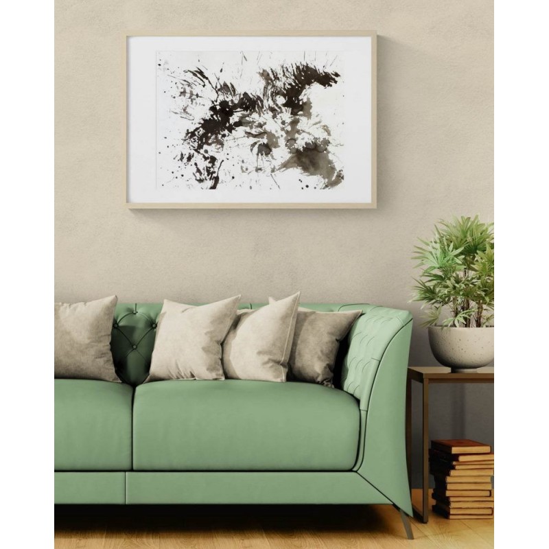 Pour une œuvre prête à accrocher, vous pouvez opter pour un cadre noir ou en bois clair, avec passe-partout et verre acrylique. Vous recevrez l'œuvre déjà encadrée.