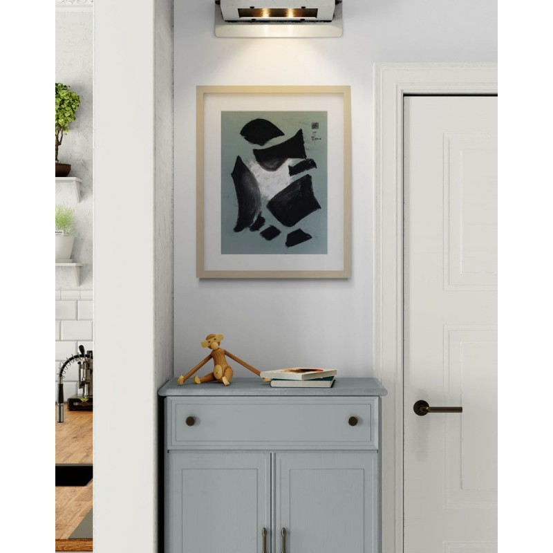 Pour une œuvre prête à accrocher, vous pouvez opter pour un cadre noir ou en bois clair, avec passe-partout et verre acrylique. Vous recevrez l'œuvre déjà encadrée.