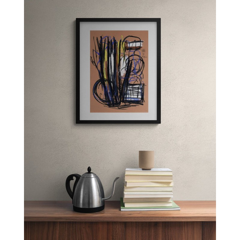 Pour une œuvre prête à accrocher, vous pouvez opter pour un cadre noir ou en bois clair, avec passe-partout et verre acrylique. Vous recevrez l'œuvre déjà encadrée.