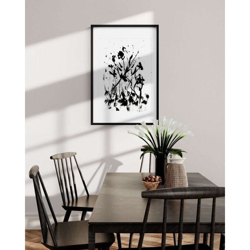 Pour une œuvre prête à accrocher, vous pouvez opter pour un cadre noir ou en bois clair, avec passe-partout et verre acrylique. Vous recevrez l'œuvre déjà encadrée.