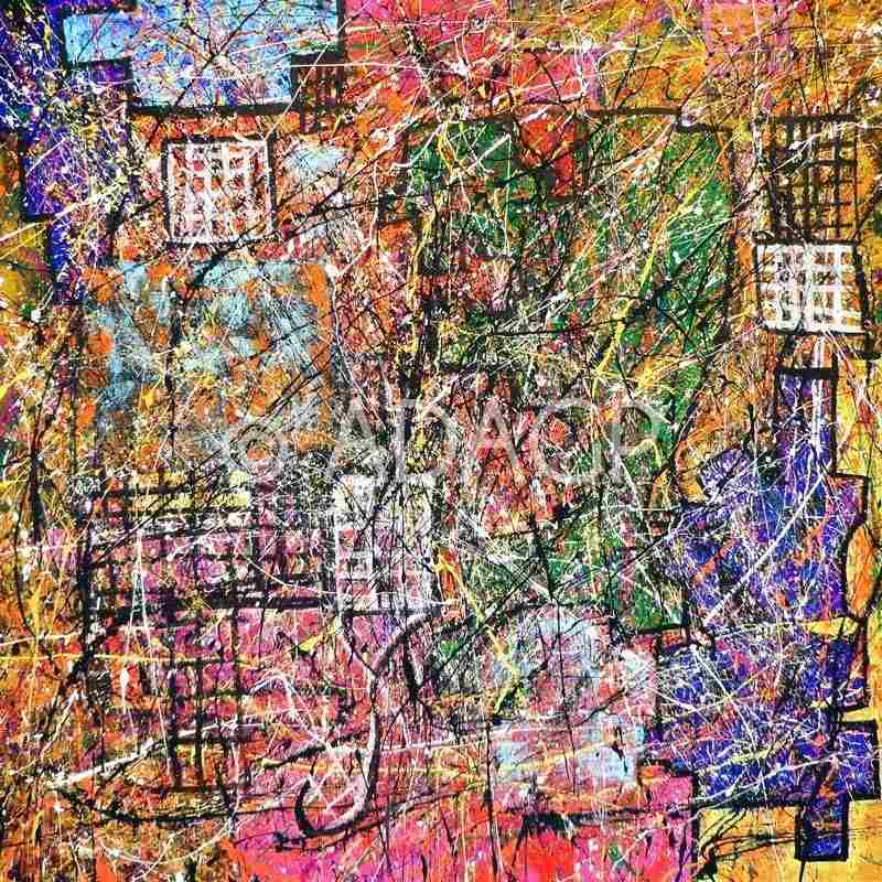 Inspirée par sa technique de projection, cette série se distingue par l'utilisation de fonds texturés agrémentés de motifs géométriques, qui ajoutent une profondeur saisissante à chaque composition. En rehaussant l'éclat des couleurs, l'artiste insuffle à ses œuvres une vitalité et un dynamisme palpables, créant ainsi un équilibre captivant entre abstraction et structure.