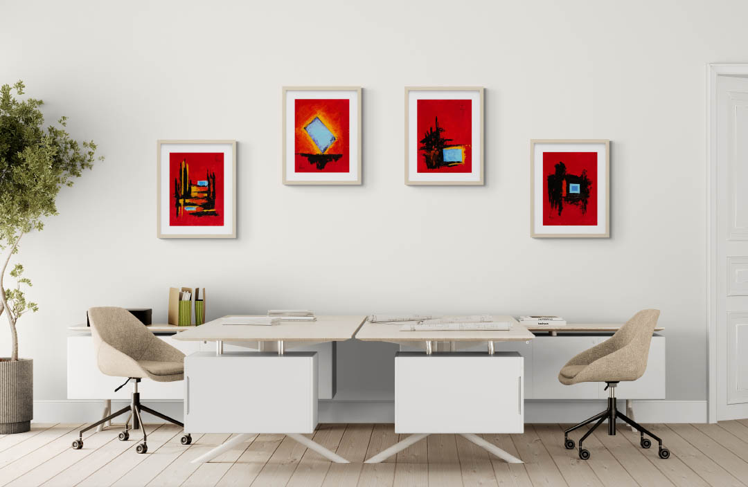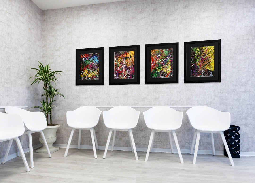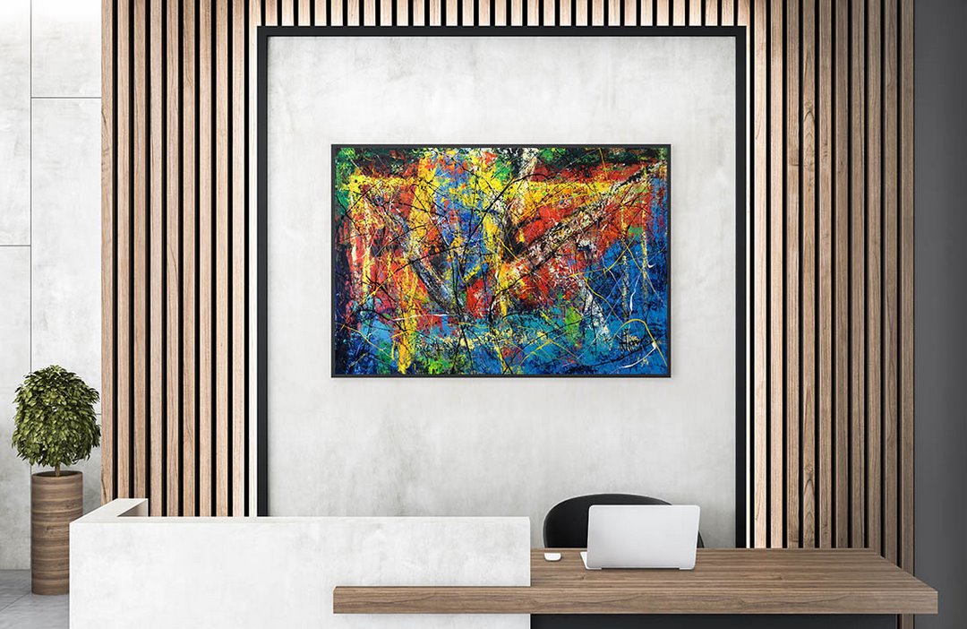 Découvrez comment les œuvres de Jean-Jacques Marie insufflent énergie et élégance dans différents environnements professionnels et personnels. Une grande variété de styles, de supports et de couleurs permet à chaque création de s’adapter harmonieusement à tous vos locaux.